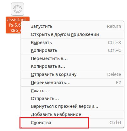 Скачать «Ассистент»Откройте папку «Загрузки», нажмите правой кнопкой мыши на файл «assistant_fs_ris» и выберите пункт «Свойства»